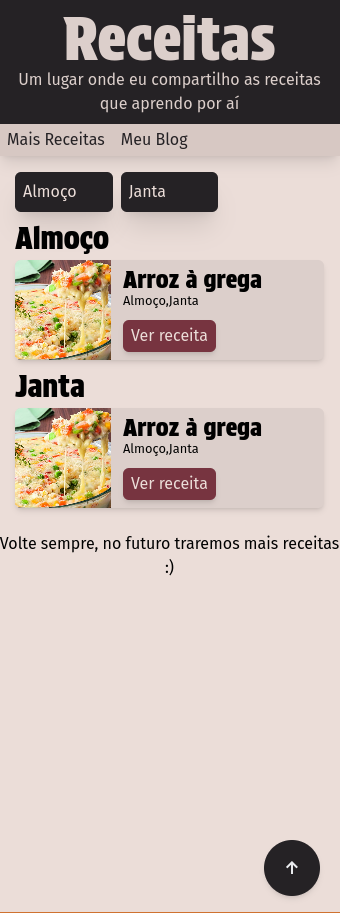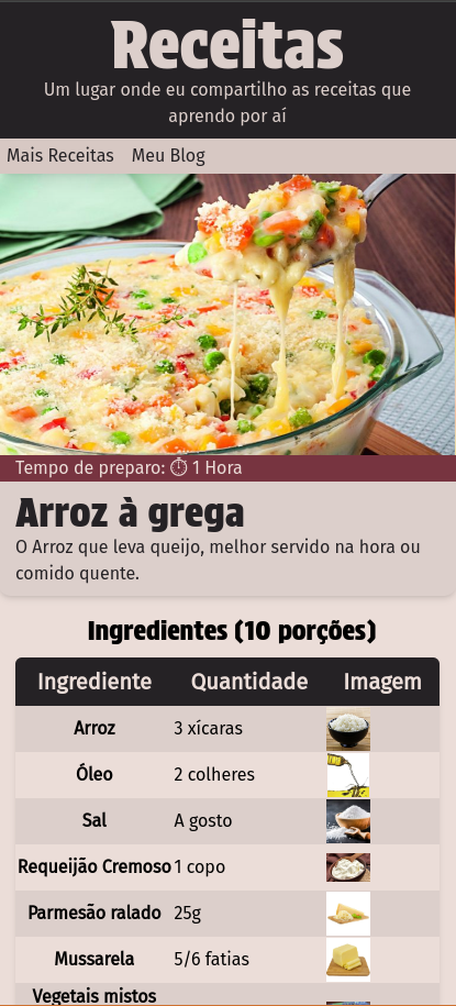 Havia criado um site para compartilhar as receitas de família, mas não publico nele faz meses. Eu criei minha própria mini-framework de geração de sites estáticos. Crio minhas postagens em yaml e o meu "compilador" cria as páginas HTML e faz a indexagem das receitas na página home automaticamente.